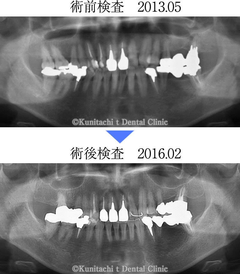 上左7番を抜歯後、患者さま自身の親知らずを抜いて移植しました。