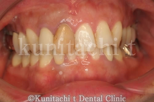 お口の審美は歯の色や形だけではなく、歯肉とのバランスが大切になります。この症例ではセラミックのかぶせ物と歯肉の移植治療で、より審美的になりました。